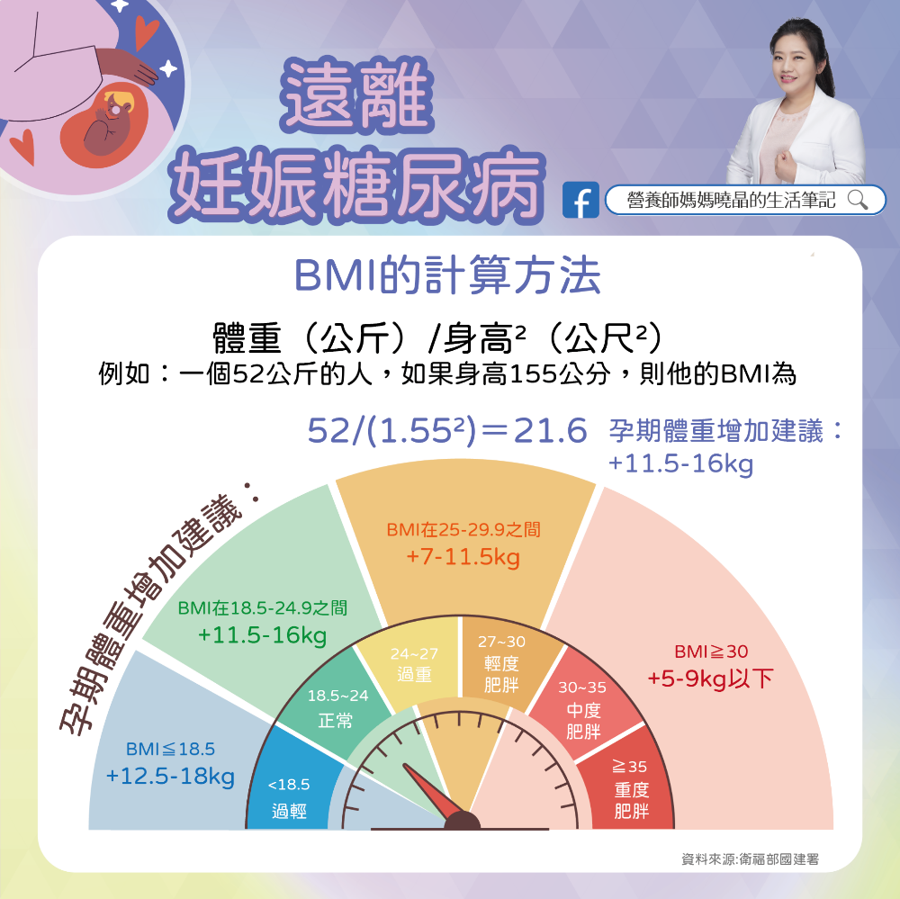 懷孕後期,因各類賀爾蒙分泌增加,導致血糖增加,倘若準媽媽體內的胰島素不足以調控血糖,便可能在妊娠後期出現高血糖症狀;此時出現葡萄糖耐受異常(包括空腹血糖或飯後血糖異常偏高)便稱為妊娠型糖尿病。若孕前體重過重,更會加重胰島素阻抗,需避免體重不斷增加,使得胰島素的阻抗愈來愈大,而造成胰臟無法分泌足夠的胰島素來抑制血糖,引發妊娠糖尿病。雖然嚴格禁止孕婦的減重行為以避免增加酮體,但需控制體重的孕婦仍要限制熱量。建議第一孕期的每天總熱量需達1500大卡,均衡飲食即可。到了中後期,則建議每天增加300大卡熱量,亦即每日總攝取量為1800大卡;另外孕程期間,建議一天總熱量攝取不能<1500Kcal/day。