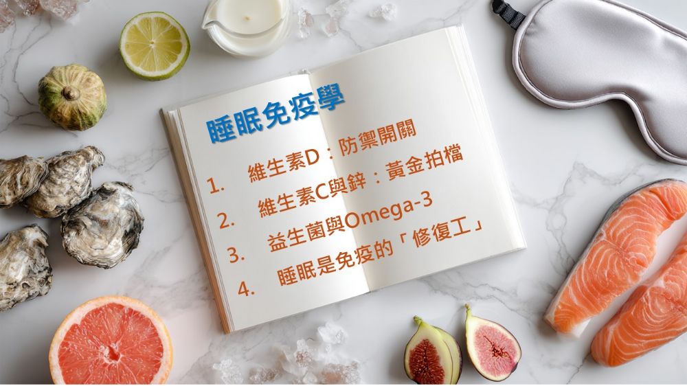 - 基礎防禦: 一早補充益生菌與鋅,維持自然殺手細胞(NK cell)的作戰能力,避免因感染生病而導致的睡眠中斷 [9]。